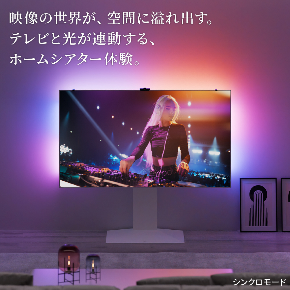 映画・ライブ・ゲーム・スポーツの映像にシンクロし同調した光がお部屋に広がる拡張型LEDライト。使用することでより映像に没入できる空間に変わります。テレビ背面に掛けるだけで簡単に設置可能。43〜48インチテレビ対応。