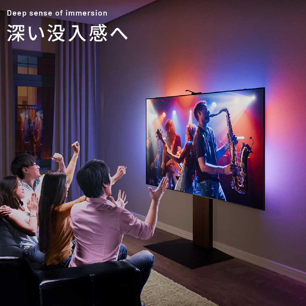 映画・ライブ・ゲーム・スポーツの映像にシンクロし同調した光がお部屋に広がる拡張型LEDライト。使用することでより映像に没入できる空間に変わります。テレビ背面に掛けるだけで簡単に設置可能。65〜70インチテレビ対応。