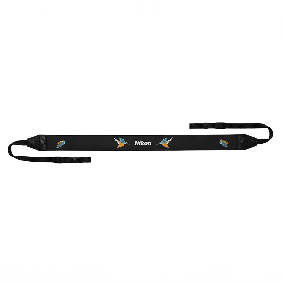 ストラップ表面はジャガード織りを施し、躍動感のあるカワセミをあしらった、双眼鏡向けのスリムストラップです。共通デザインでカメラ向けのワイドストラップ(別売)もご用意。ワイドとスリムの両方を使ってカメラや双眼鏡を同時にぶら下げても、お互いにぶつからない長さに設計しています。本製品は、野鳥や飛行機の撮影を得意とする写真家 中野耕志氏が監修しました。