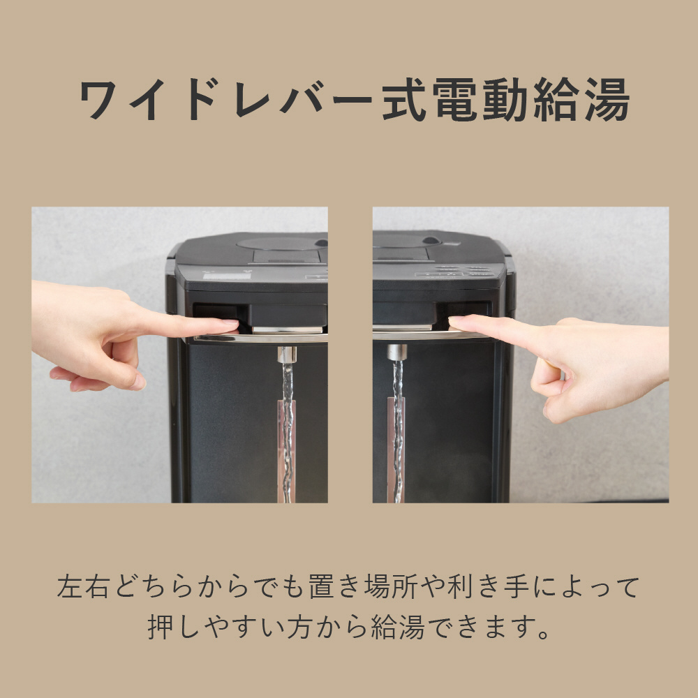 左右どちらからでも置き場所や利き手によって押しやすい方から給湯できます。