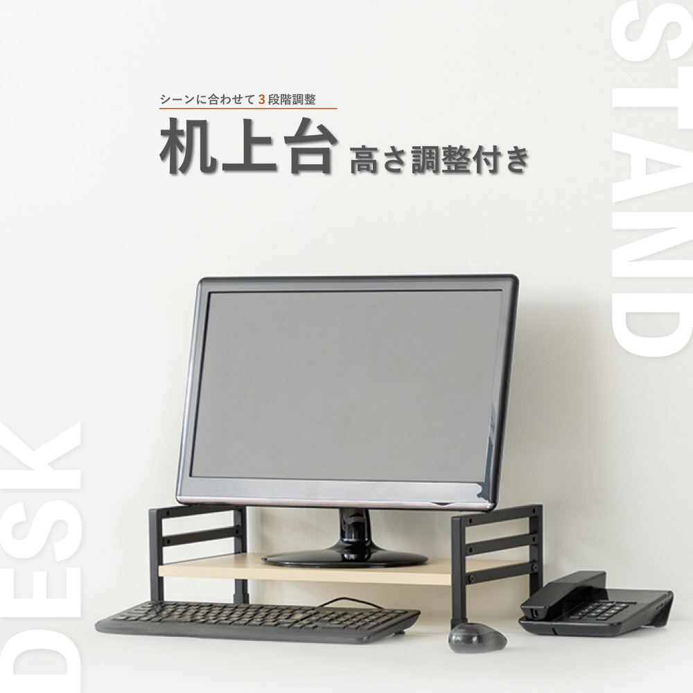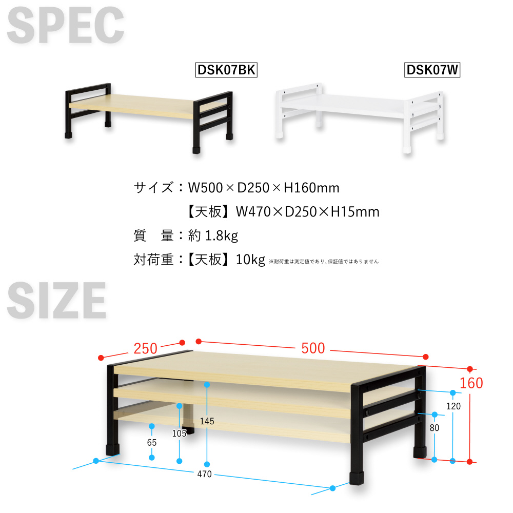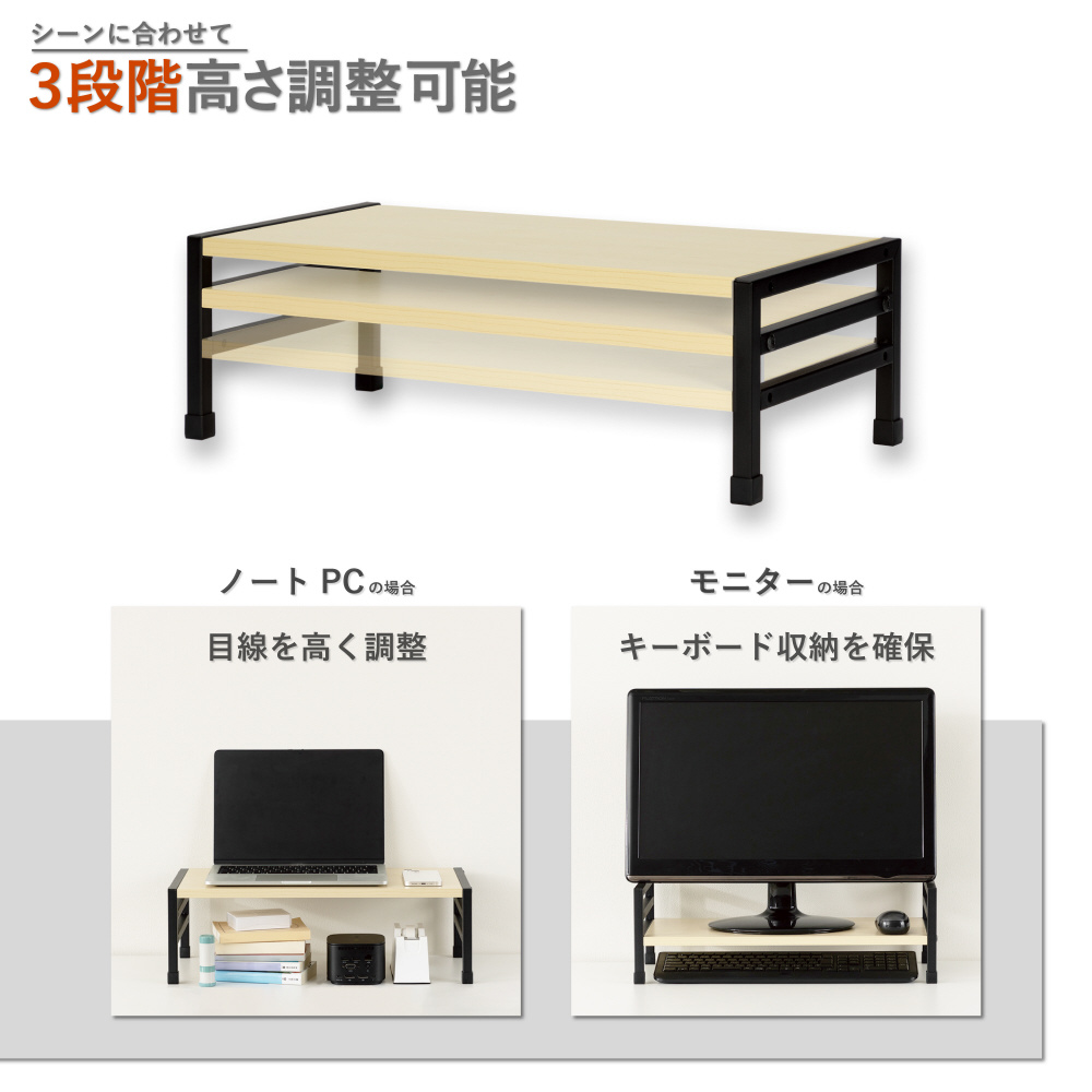 用途に合わせて3段階の高さ調整!机上台 DSK07BK Asmix 木目/ブラック DSK07BK