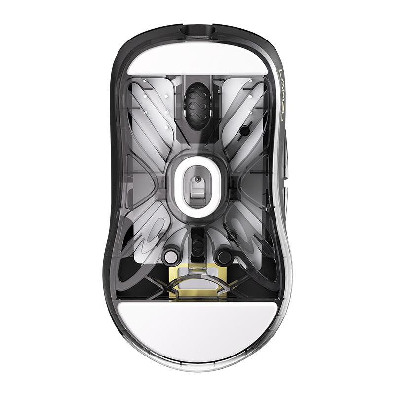 LAMZU定番ワイヤレスゲーミングマウスの小型軽量版。左右対称でホールドしやすく、安定した操作が可能な形状。