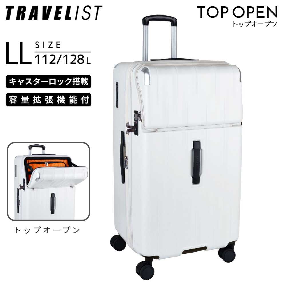 トップオープン キャスターストッパー 拡張機能付きスーツケース 超大容量 LLサイズ 縦長キャリー レスト マットホワイト 76-25219 [TSAロック搭載]