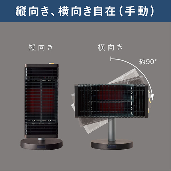仕様3 デジタルワット表示、 首振りスイッチ、 チャイルドロック、 消し忘れ防止6時間タイマー、縦・横兼用スタンド、 二重過熱防止機能、 二重転倒OFF機能(転倒保護スイッチ)、停電時安全装置、 過電流防止機能