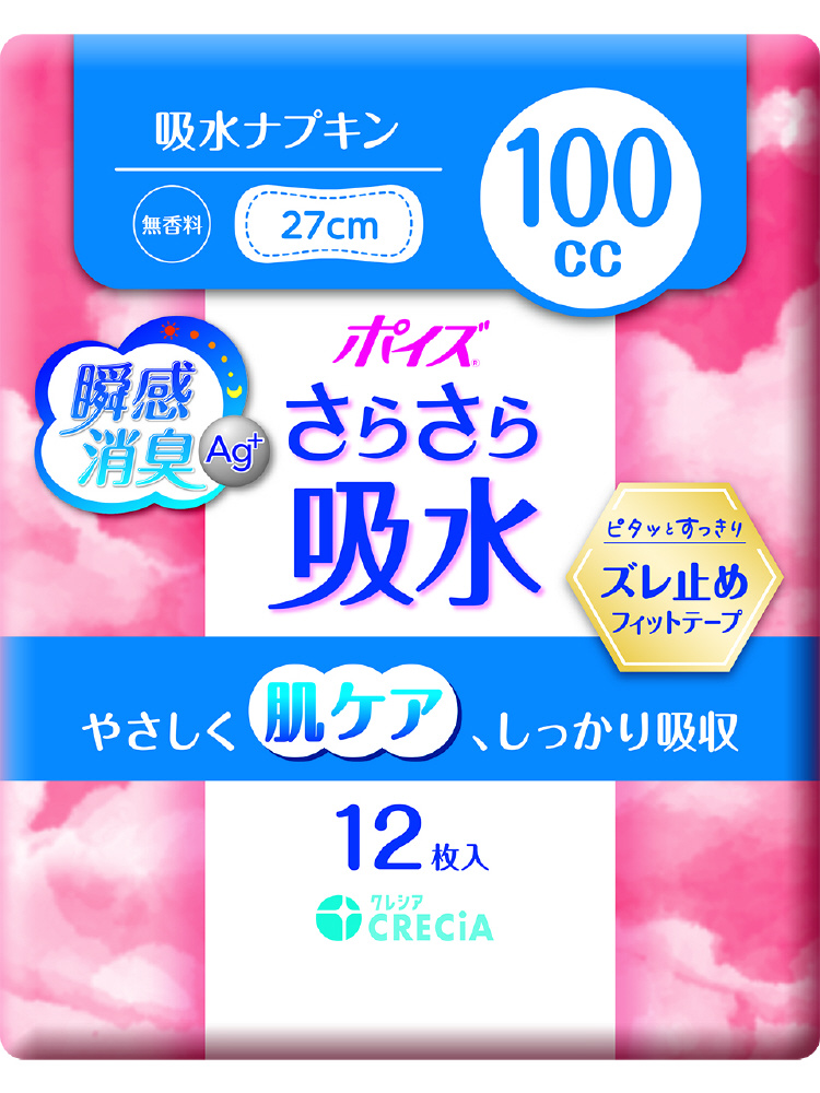 ポイズさらさら吸収ナプキン 100CC 無香料 12枚