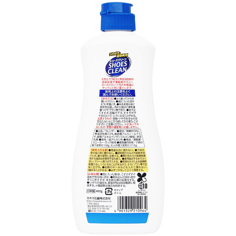 天然ミクロ粒子と界面活性剤の相乗効果で、運動靴やスニーカーのドロ汚れをスッキリと洗い落とし、繊維の奥にしみこんだ汚れもしっかりと落とします。中敷き・合皮も洗えるクリームクレンザーです。さっぱりとしたミントの香り。蛍光剤・漂白剤は入っておりません。