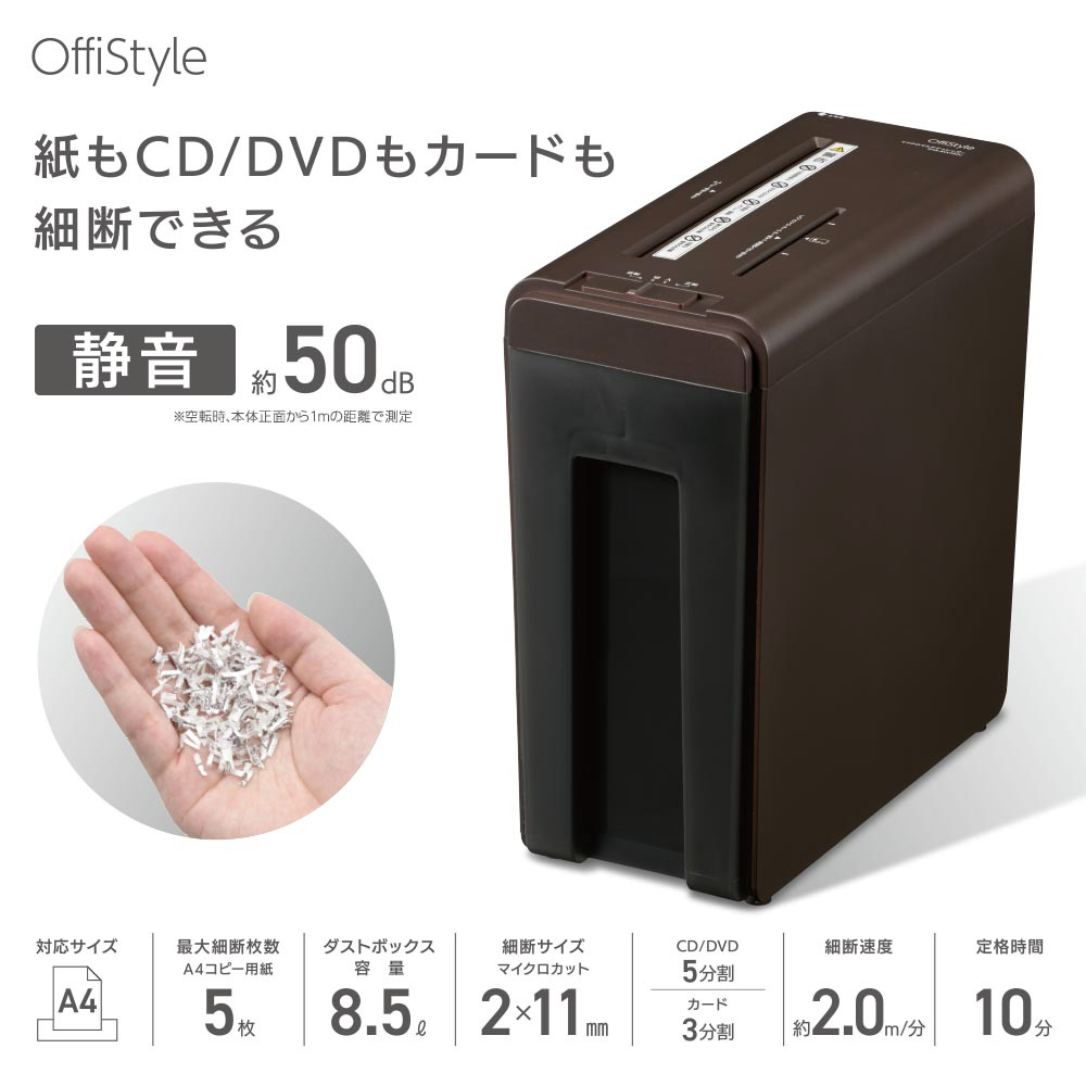静音マイクロマルチシュレッダー OffiStyle ブラウン SHR-MX492C [マイクロカット /A4サイズ]