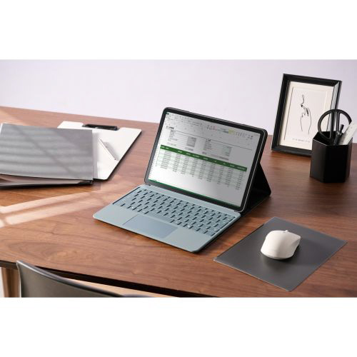 学校やビジネスシーンにおすすめ、シンプルなデザインのドキュメントケース型衝撃吸収ケース です。端末と別売りキーボードをまとめて持ち歩きができます。弾力性と硬さをあわせ持つTPU(熱可塑性ポリウレタン)素材が傷や衝撃を和らげます。
