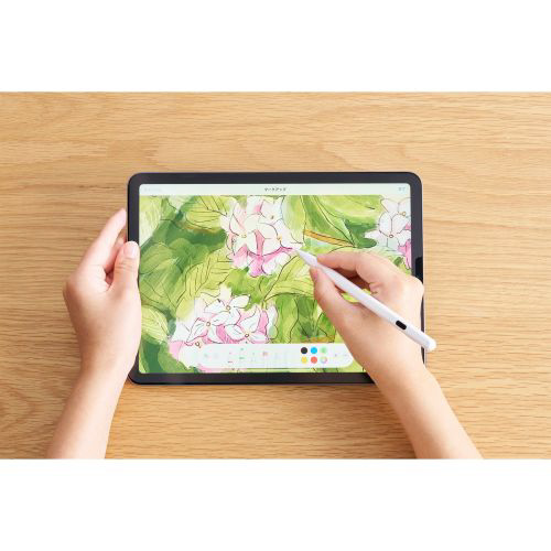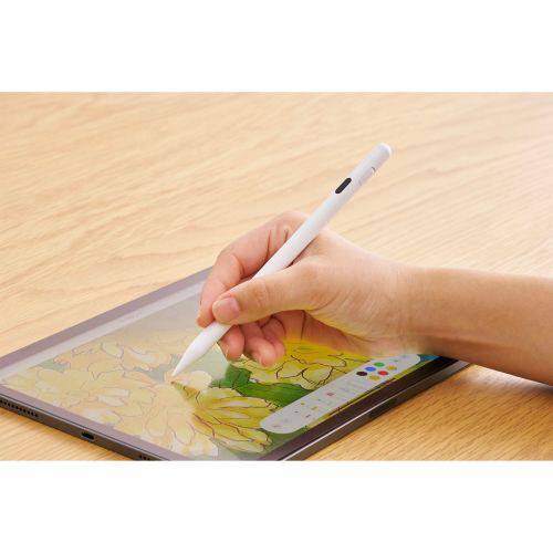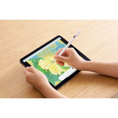 約16時間の連続使用が可能な、iPad用アクティブタッチペンです。電池残量は画面に数字で表示されるため、充電のタイミングがひと目でわかり、うっかり充電し忘れるのを防げます。約20分でフル充電できる急速充電機能を搭載。長時間の作業にぴったりで、集中して描き続けたい方におすすめです。