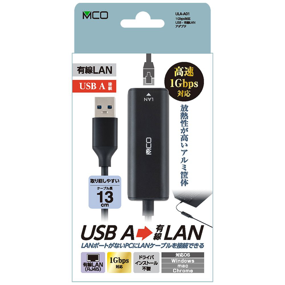 LAN変換アダプタ [USB-A オス→メス LAN] 1Gbps対応(Mac/Windows11対応・Switch対応) ブラック ULA-A01BK