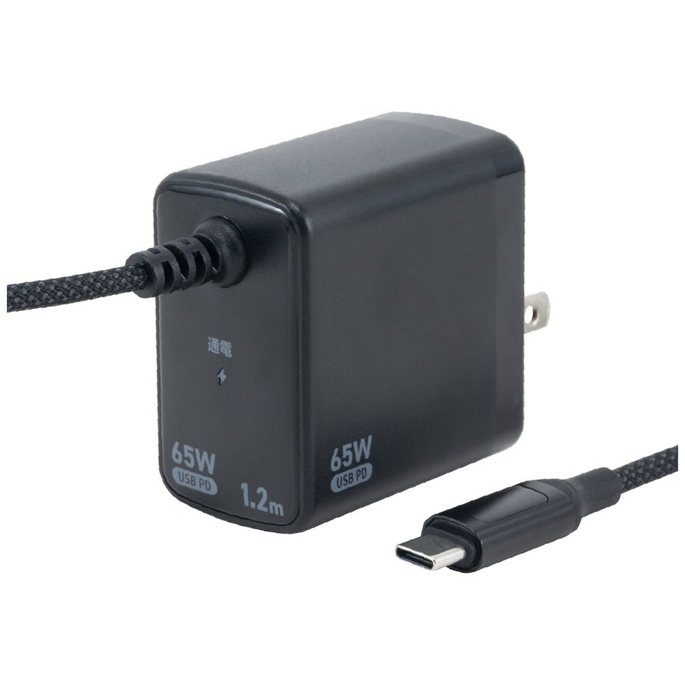 AC⇔USB-C充電器 ノートパソコン・タブレットPC対応 65W [1.2m /USB Power Delivery対応] ブラック JYU-AC0212BK