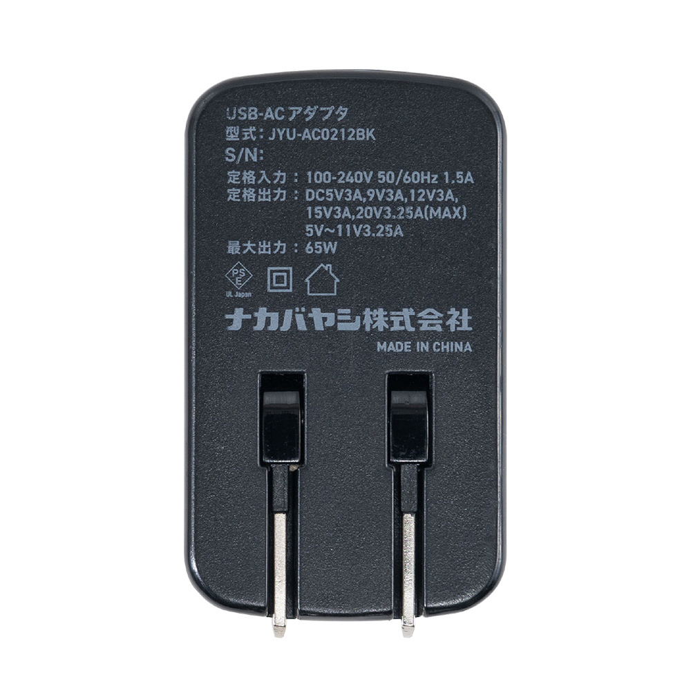 [出力(OUTPUT)]5V3A、 9V3A、12V3A、15V3A、 20V3.25A、 5〜11V3.25A (65W Max)