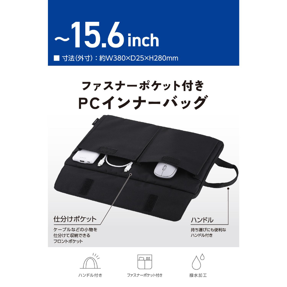 ノートパソコン対応 [〜15.6インチ] インナーバッグ 縦型 ハンドル/仕分けポケット付き ブラック BM-IBHP15BK