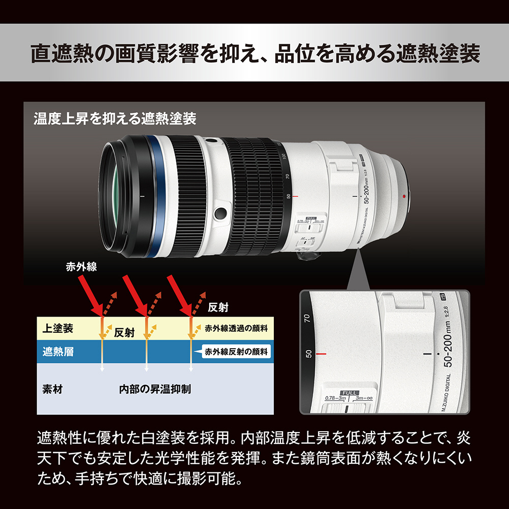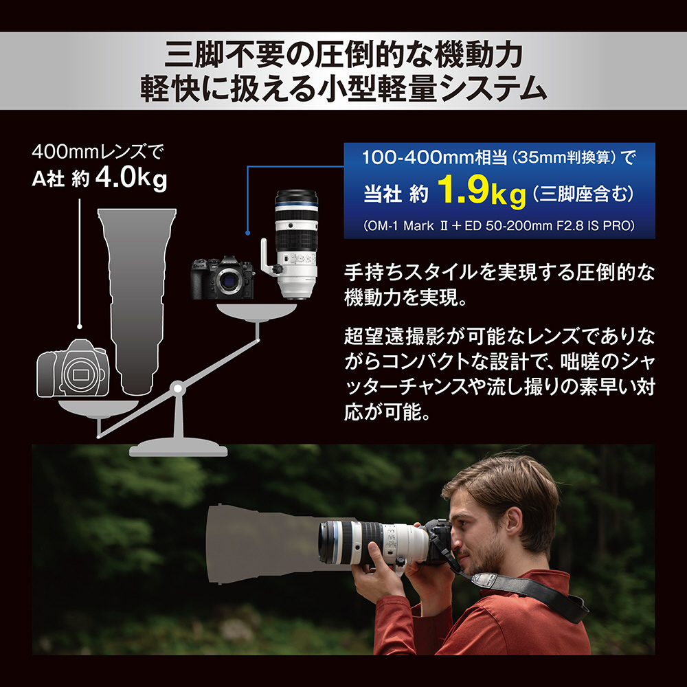風景や望遠マクロ、野鳥などあらゆる撮影シーンで活躍。全域F2.8で小型軽量な高性能超望遠ズームレンズ「M.ZUIKO DIGITAL ED 50-200mm F2.8 IS PRO」。