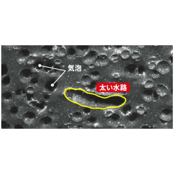 ゴムがやわらかいため氷にしっかり密着。さらに、細かい気泡が路面とタイヤの間にある水膜を除去。
