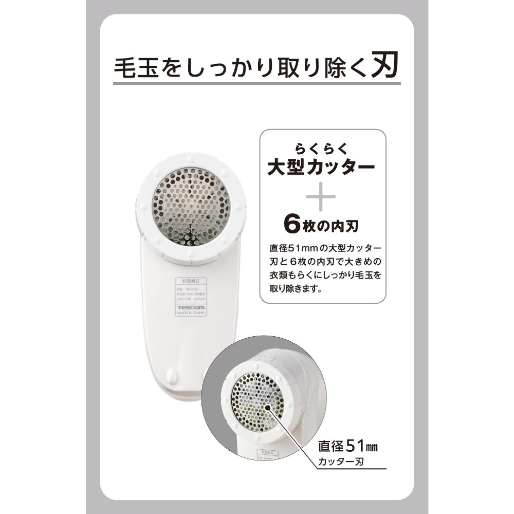乾電池式毛玉取り 6枚刃 風合いガード セーター対応