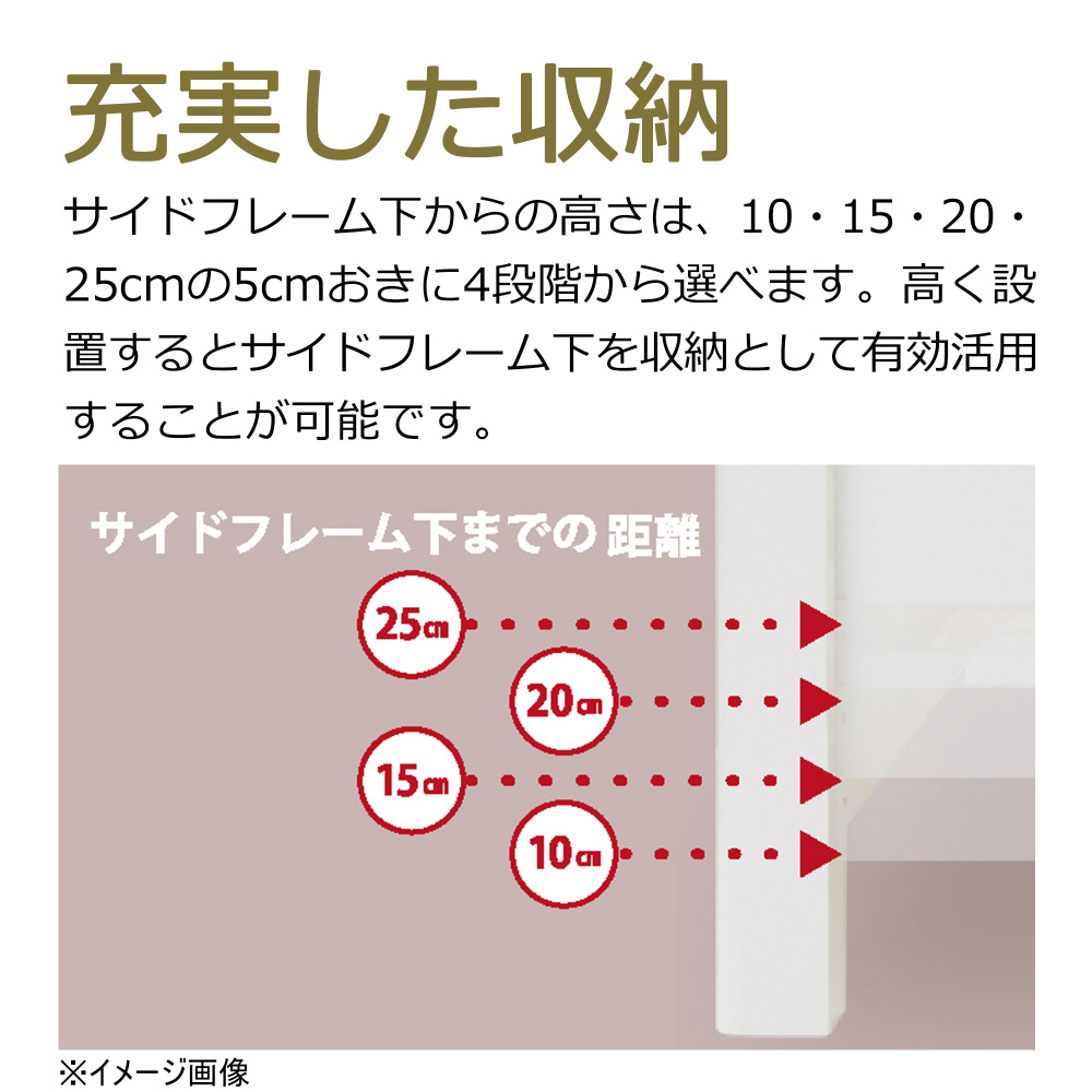 サイドフレーム下からの高さ【10・15・20・25・30cm】の5段階から選べます。