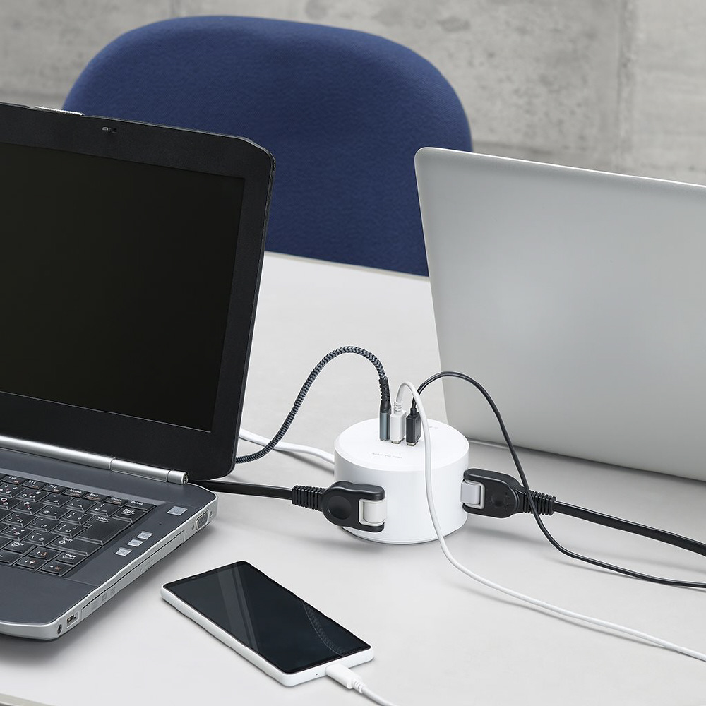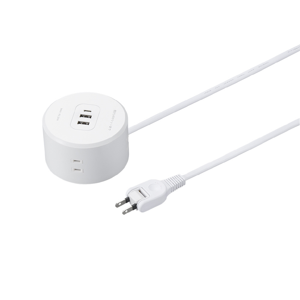 USB充電しながらコンセントも使える 丸型タップ4個口PD20W1.5m 白