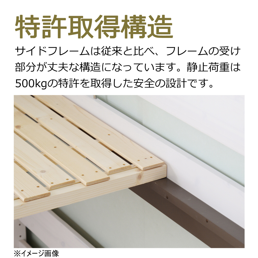 静止荷重は500kgの特許を取得した安心安全設計の2段ベッドフレーム