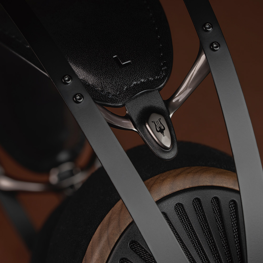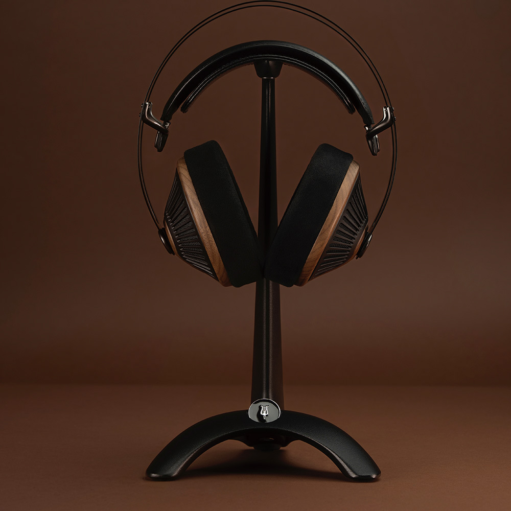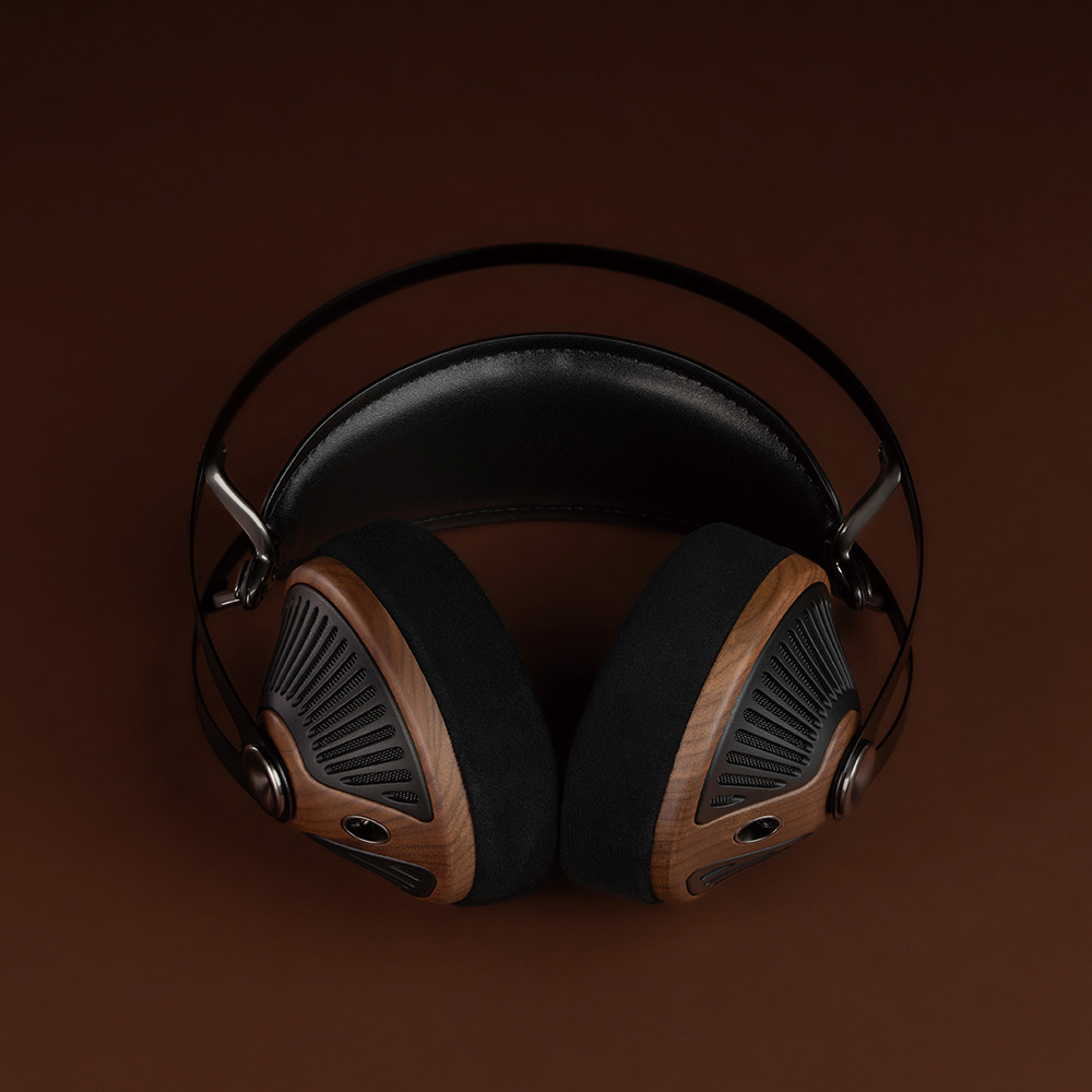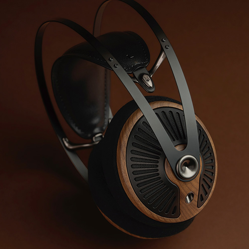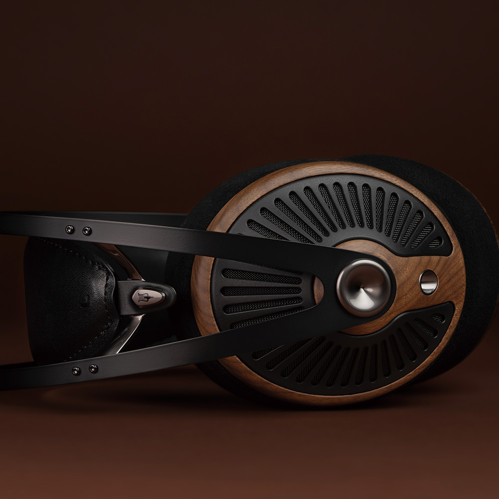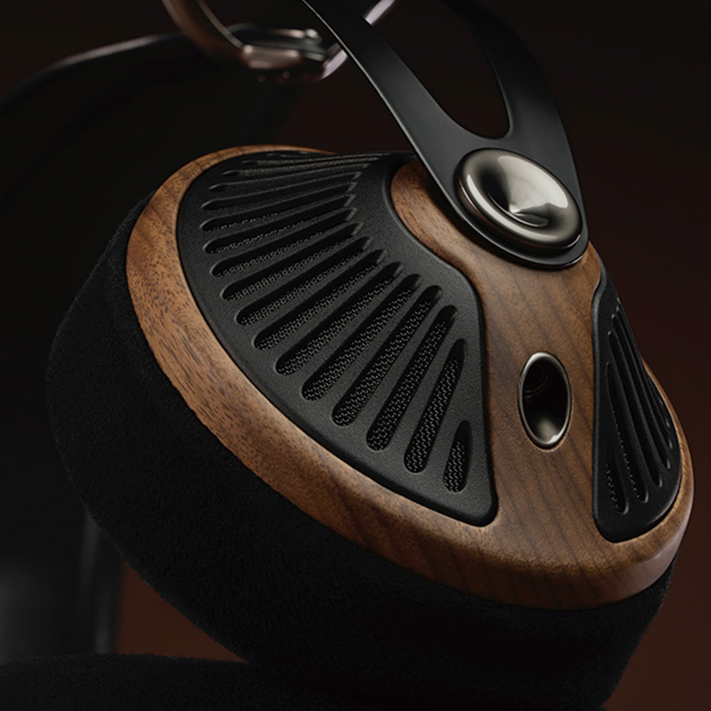 木のぬくもりが感じられるウォールナット材のイヤーカップと、放射状に広がるPC-ABSグリルが、見る角度によって表情を変え、いつまでも飽きのこない、特別な存在感を放ちます。