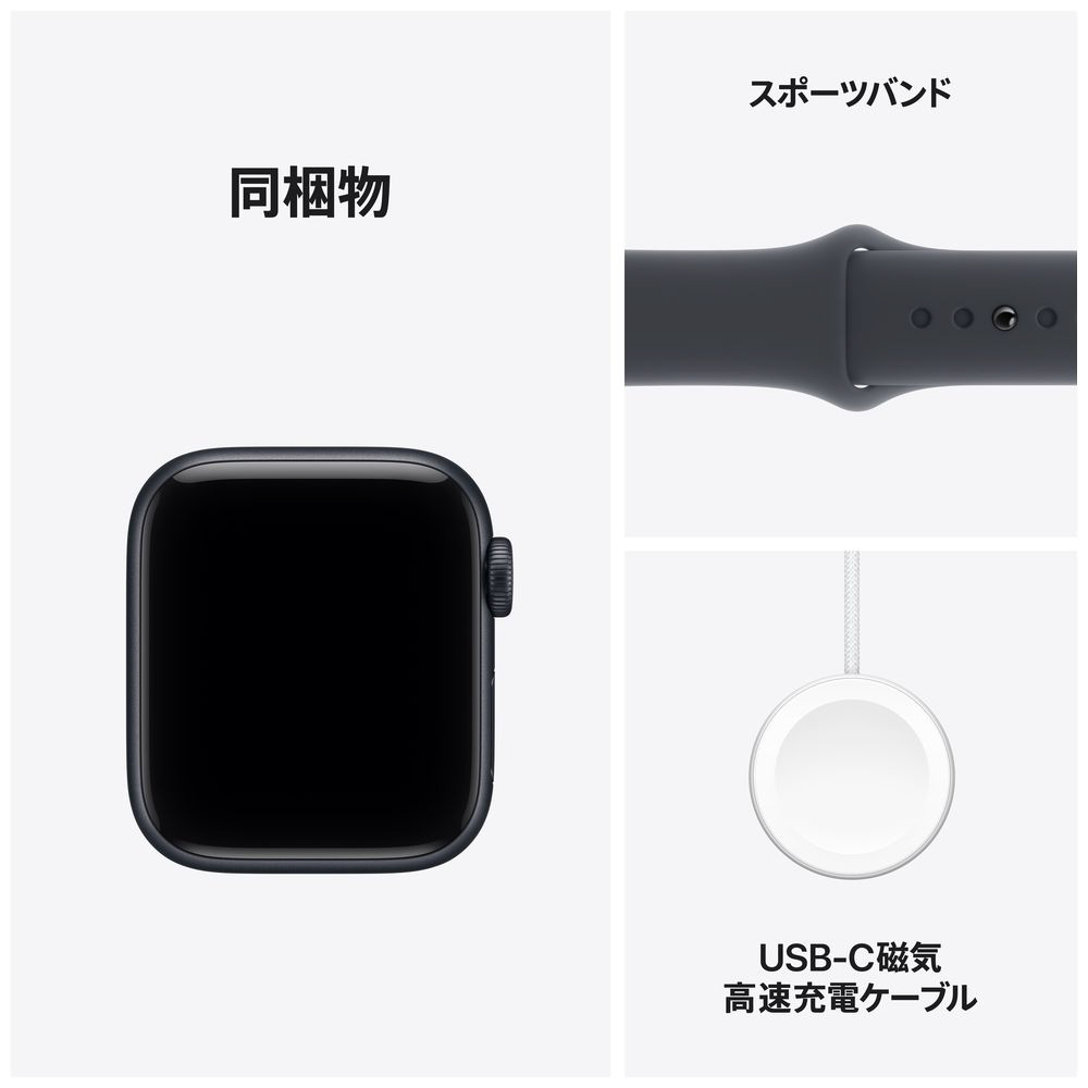 付属品 ミッドナイトアルミニウムケース、スポーツバンド、Apple Watch磁気高速充電 - USB-Cケーブル(1m)
