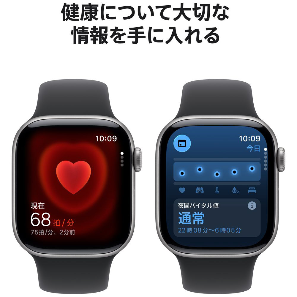 いつでも心電図を記録する。高心拍数と低心拍数、不規則な心拍リズム、睡眠時無呼吸の兆候が検出された場合に通知を受け取る。バイタルアプリで夜間の健康指標を確認する。あなたの体に取り込まれた酸素のレベルをチェックすることもできます。