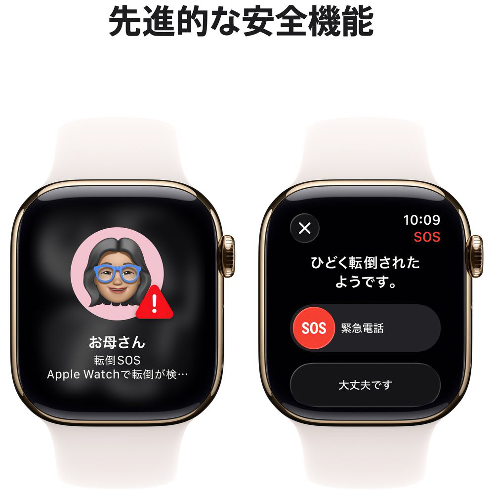 あなたが転倒した時や自動車で重大な衝突事故に遭った時に、Series 11がそれを検知。緊急通報サービスへの救助の要請と、あなたが事前に設定した緊急連絡先への連絡を自動でサポートします。到着確認機能は、あなたが目的地に到着したことを大切な人に自動で通知します。