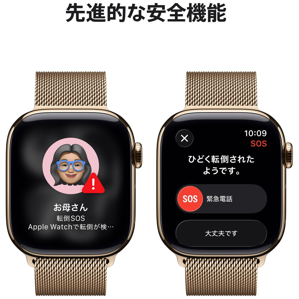 あなたが転倒した時や自動車で重大な衝突事故に遭った時に、Series 11がそれを検知。緊急通報サービスへの救助の要請と、あなたが事前に設定した緊急連絡先への連絡を自動でサポートします。到着確認機能は、あなたが目的地に到着したことを大切な人に自動で通知します。