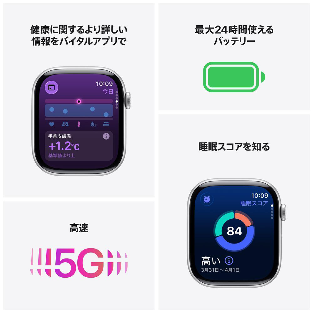 Apple Watch Series 11、登場。睡眠スコアを備え、高速5Gに対応1。最大24時間使えるバッテリーも搭載しています。