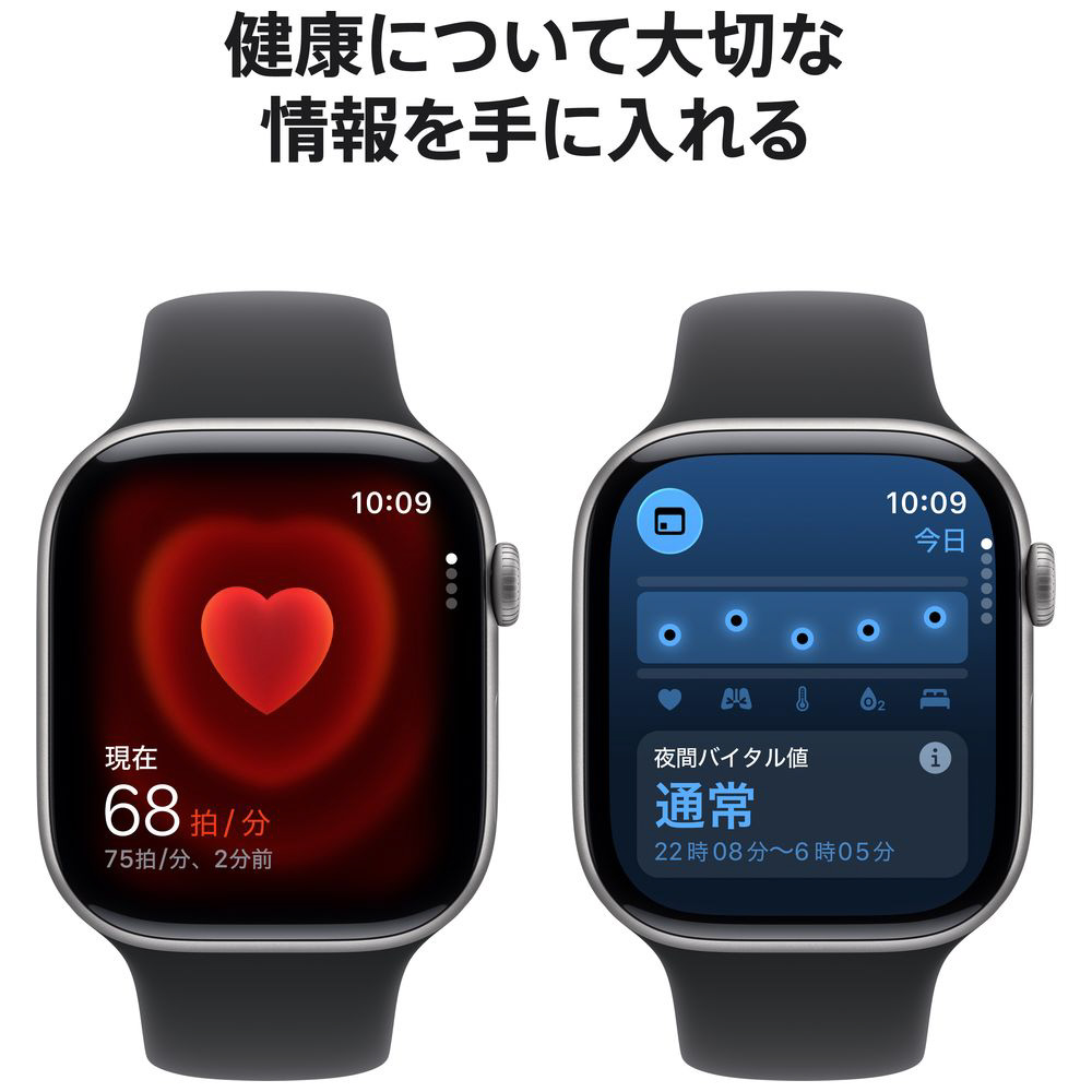 いつでも心電図を記録する。高心拍数と低心拍数、不規則な心拍リズム、睡眠時無呼吸の兆候が検出された場合に通知を受け取る。バイタルアプリで夜間の健康指標を確認する。あなたの体に取り込まれた酸素のレベルをチェックすることもできます。