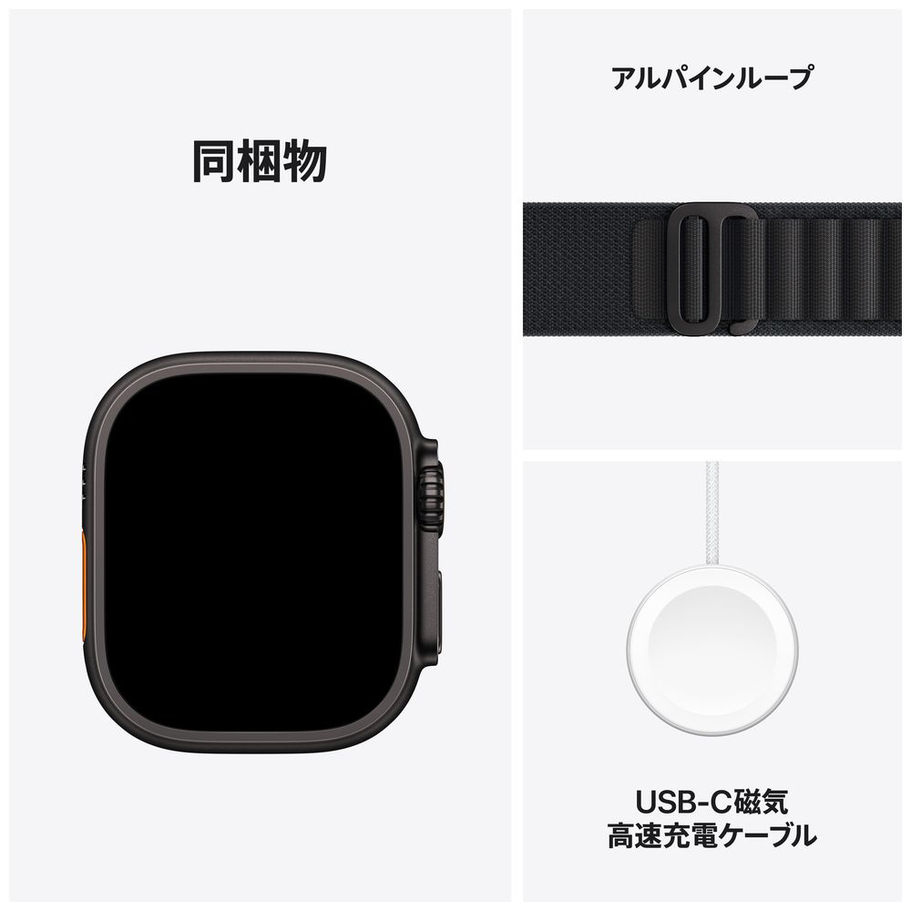 付属品 ブラックチタニウムケース、アルパインループ、Apple Watch磁気高速充電 - USB-Cケーブル(1m)