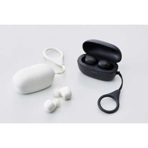 超ミニサイズ&軽量!どこでも持ち運べる完全ワイヤレスヘッドホンです。手のひらにすっぽり収まる超ミニサイズと超軽量設計で、ポケットやミニバッグなどにも余裕で収納できます。リングストラップ付きでかばんの中でも見つけやすく、持ち運びに便利です。