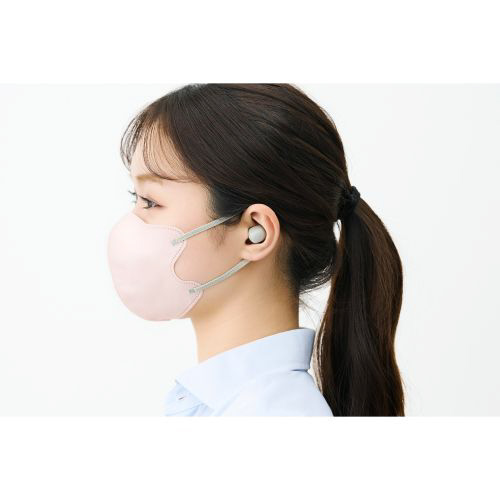 ヘッドホンは出っ張りが少ない形状なので、マスクや髪に引っかかりにくく、スマートに装着できます。