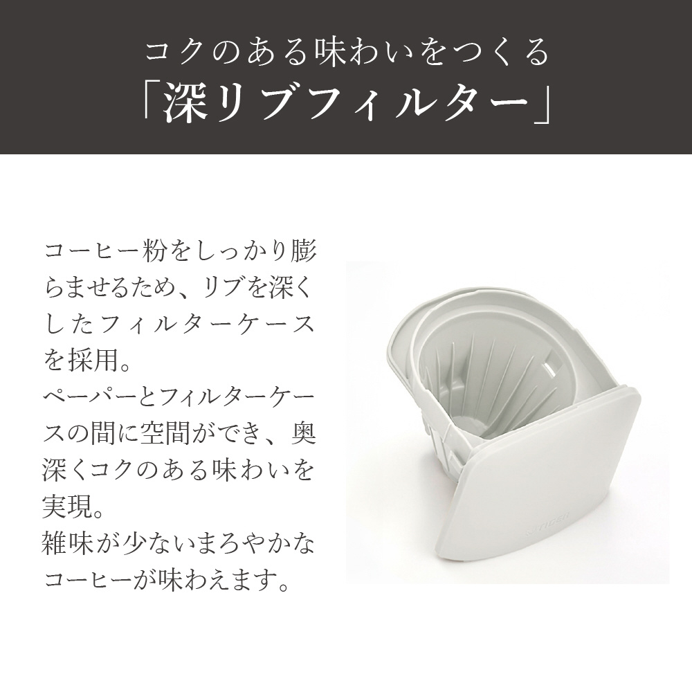 ペーパーとフィルターケースの間に空間ができ、奥深くコクのある味わいを実現。