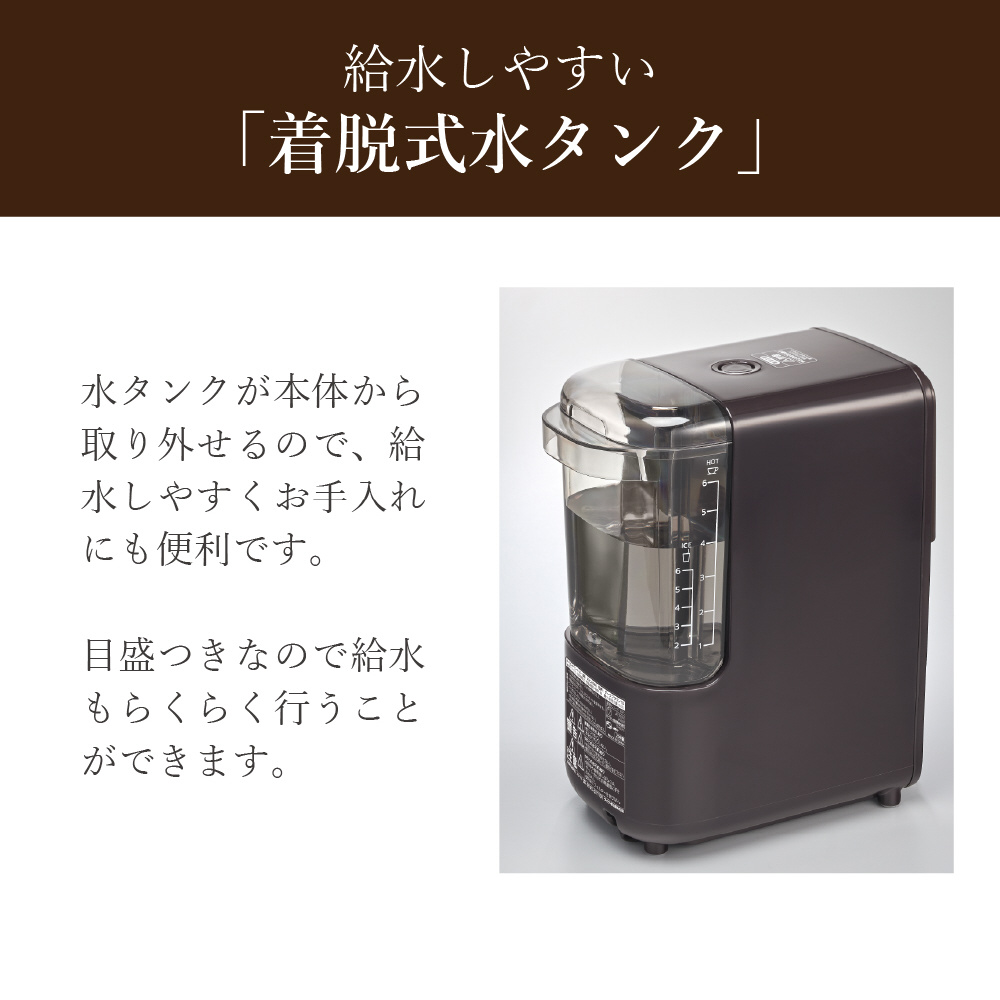 水タンクが本体から取り外せるので、給水しやすくお手入れにも便利です。