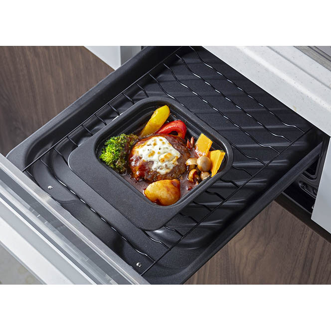 ガス・IHコンロのグリル、大型オーブントースターで簡単クッキング。フッ素Wコートでこびりつきにくい優れもの!