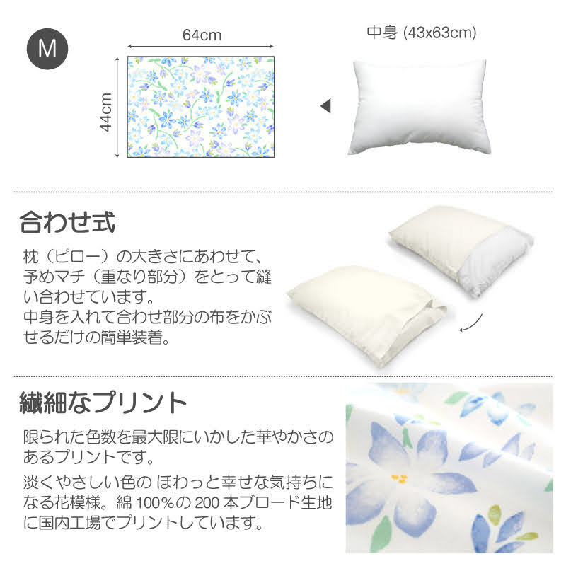 【まくらカバー】Fab the Home(ファブザホーム) ピュアリー Mサイズ Fab the Home(ファブザホーム) ブルー FH112188-300 [43×63cm枕用 /合わせタイプ]