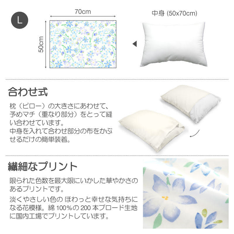 【まくらカバー】Fab the Home(ファブザホーム) ピュアリー Lサイズ Fab the Home(ファブザホーム) ブルー FH113188-300 [50×70cm枕用 /合わせタイプ]