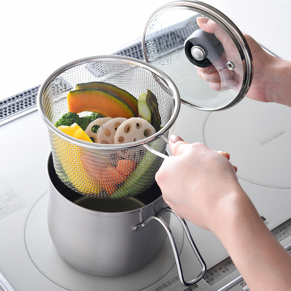 ●セット内容:鍋、ストレーナー、ガラス蓋、ステンレスプレート