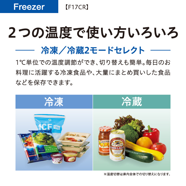 ・2モードセレクトで、冷蔵/冷凍が選択可能