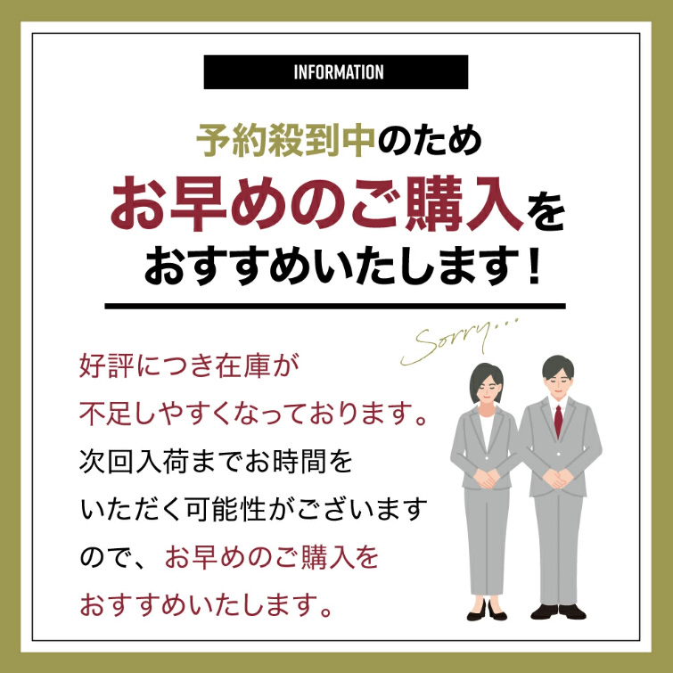 「ご注文時の状況によりお届けまでに平常時よりも長い期間を要する場合がございます。お急ぎの場合は営業担当者へお問い合わせください。」