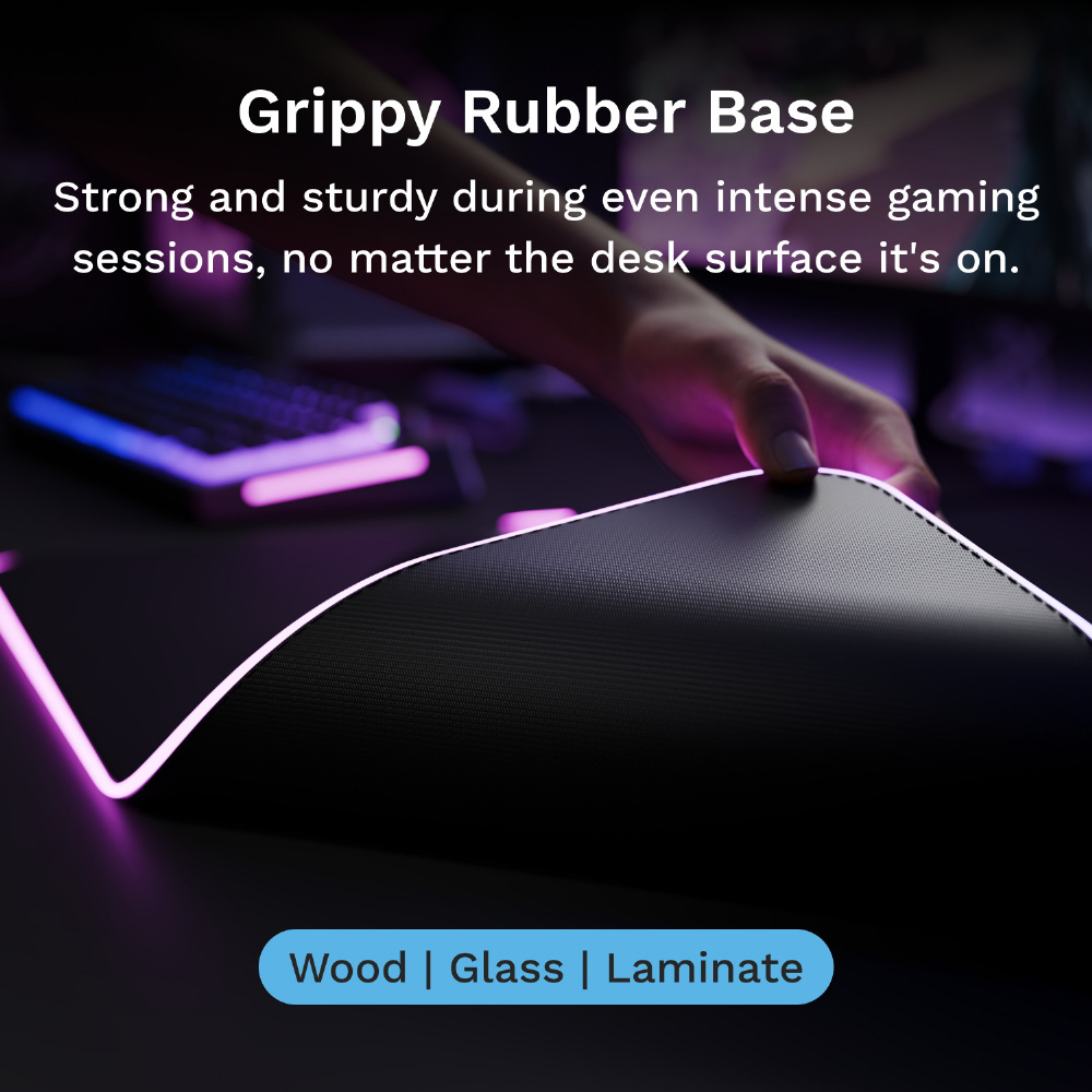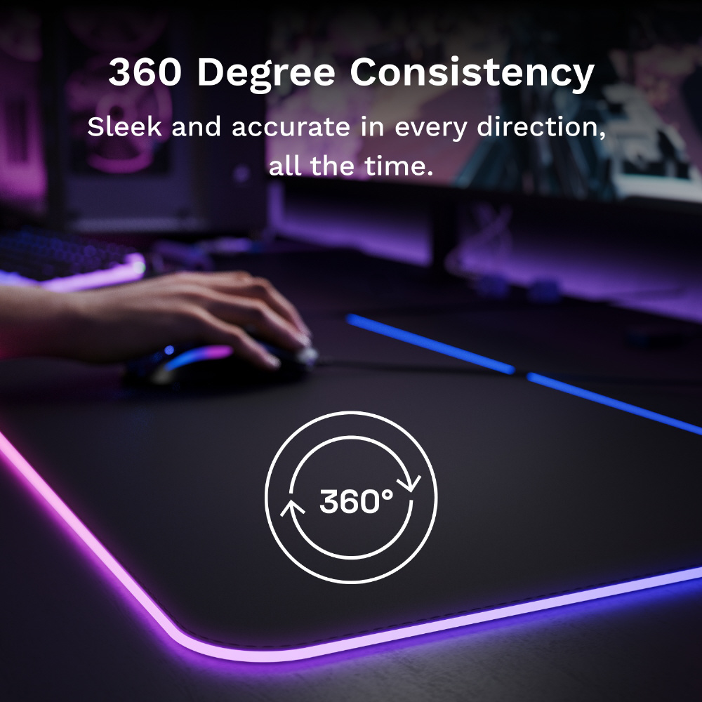 外周部分に2ゾーンのRGBライティングを搭載。滑らかで安定した操作を実現するゲーミングマウスパッド