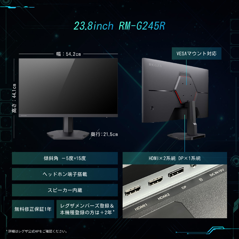 RM-G245R ゲーミングモニター   [23.8型 /フルHD(1920×1080) /ワイド /240Hz]
