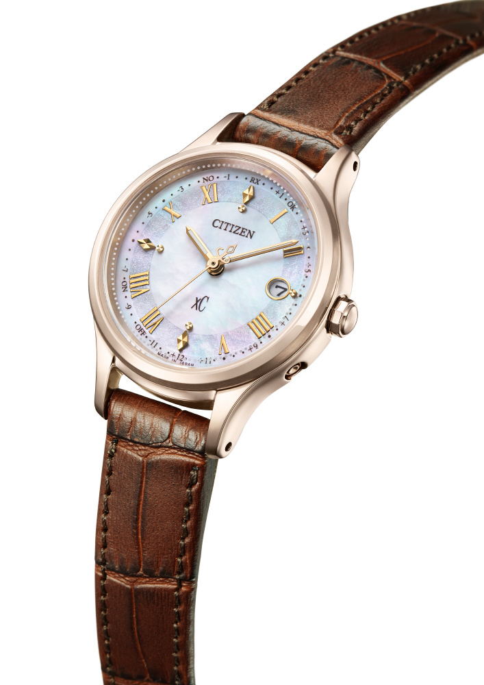 前を向く女性を応援するエンパワーウオッチブランド、シチズン xC(クロスシー)。サクラピンクのケースと白蝶貝文字板の組み合わせがシンプルでありながらも、華やかな存在感を演出。ブラウンの革バンドが手元を引き締める「hikari collection」の新作です。
