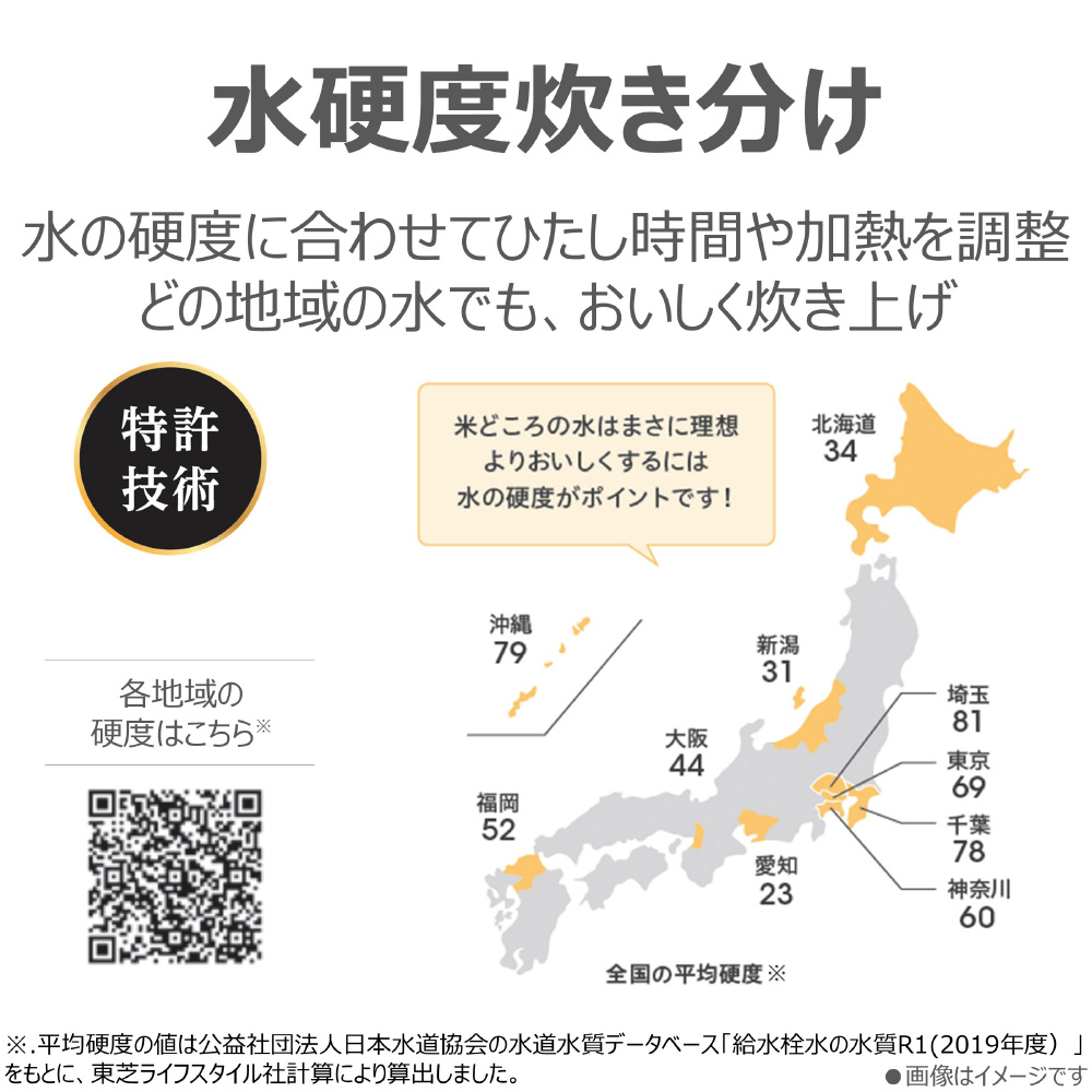 ■「特許技術 水硬度炊き分け いつもの水で理想のおいしさに」