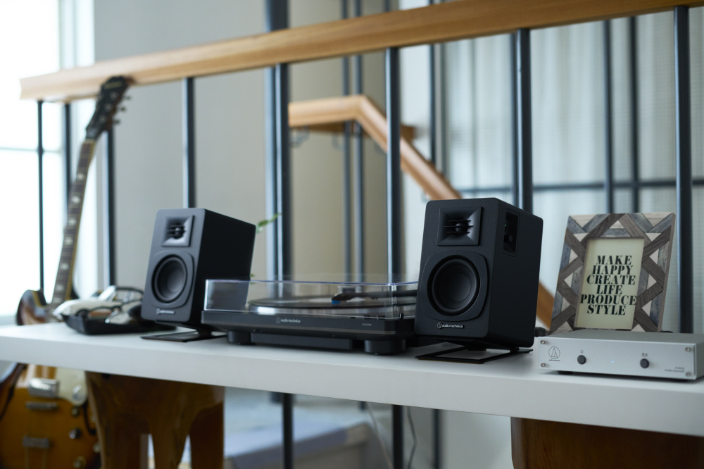 オーディオテクニカのパワードブックシェルフスピーカー『AT-SP3X』の持つ性能を最大限に引き出す設計が施されています。また、同等サイズのブックシェルフ型スピーカーでも、置くだけで音質向上を図ることができます。
