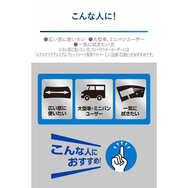 小さい窓に使いたい方、コンパクトカーユーザーには「エクスクリアプレミアム ウェットシート専用ワイパー ミニ(品番:C189)」がおすすめです。
