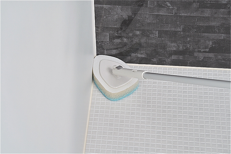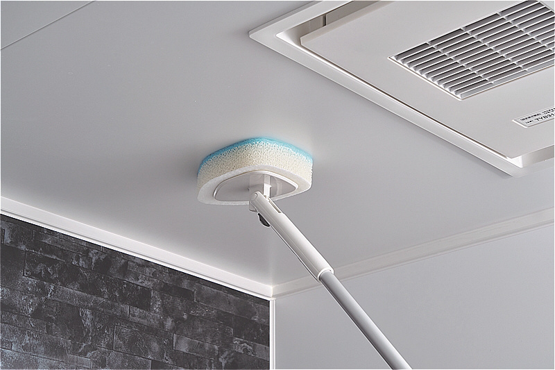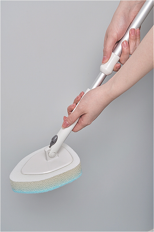 柄が伸びて天井等の高いところも楽に洗えるロングタイプの伸縮バスクリーナー。