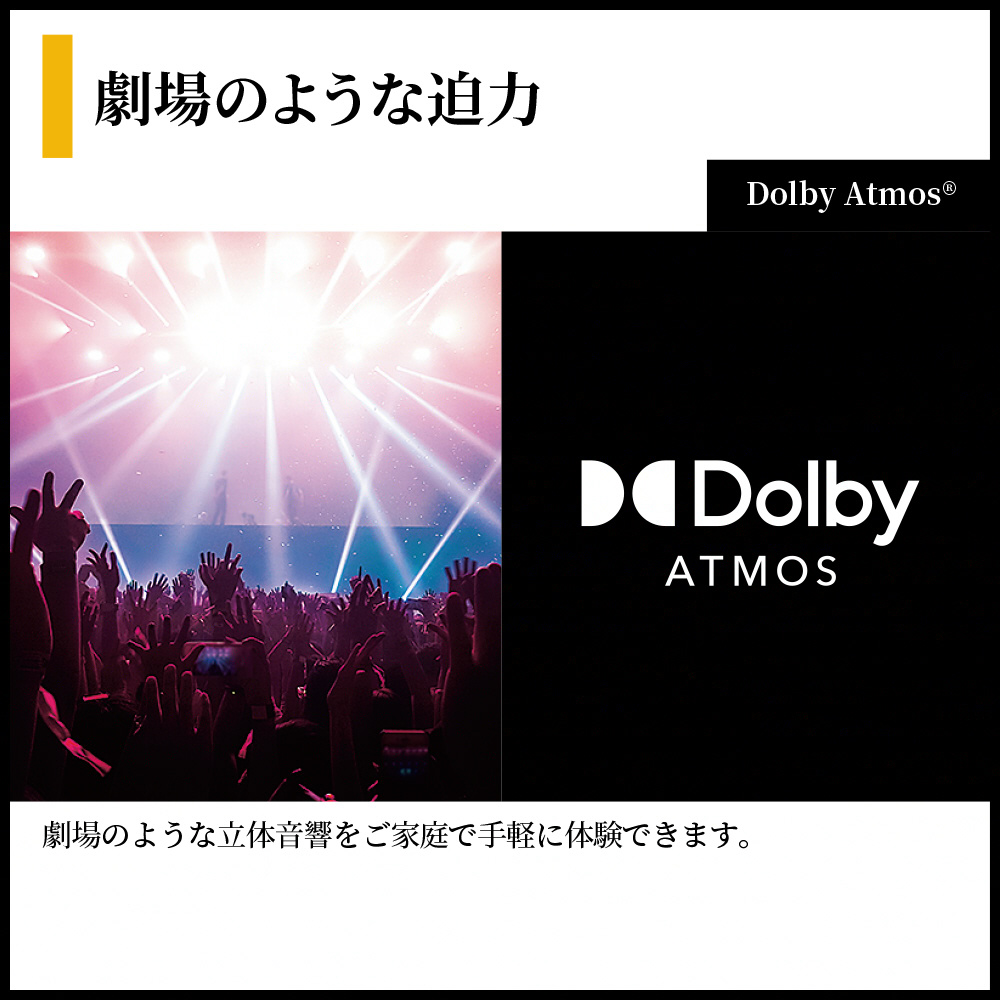 音質面では、AIが音声信号を解析し、音楽ライブやスポーツ視聴時は臨場感を高め、合間のセリフや解説中は声を明瞭にして聞き取りやすくするなど、シーンに適した調整を自動で行います。