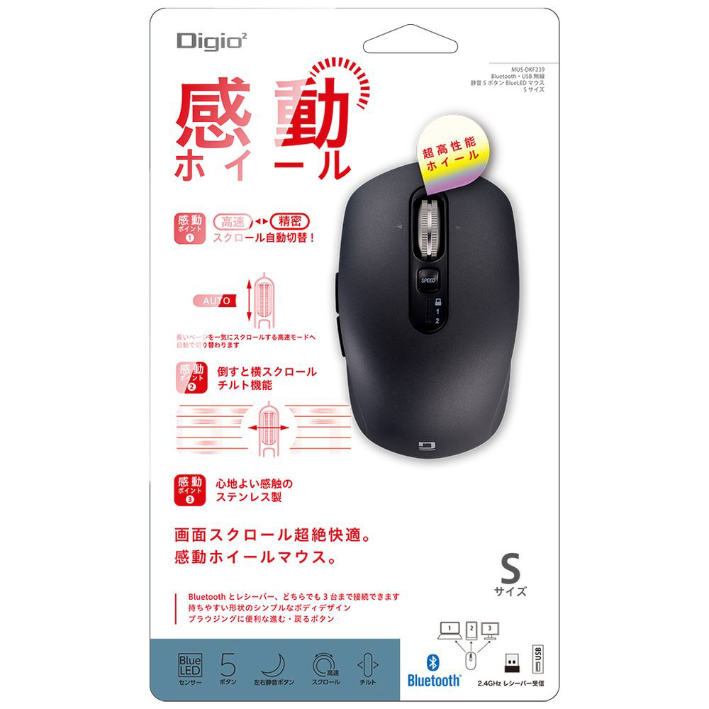 マウス Sサイズ(Chrome/iPadOS/iOS/Mac/Windows11対応) ブラック MUS-DKF239BK [BlueLED /無線(ワイヤレス) /5ボタン /Bluetooth・USB]